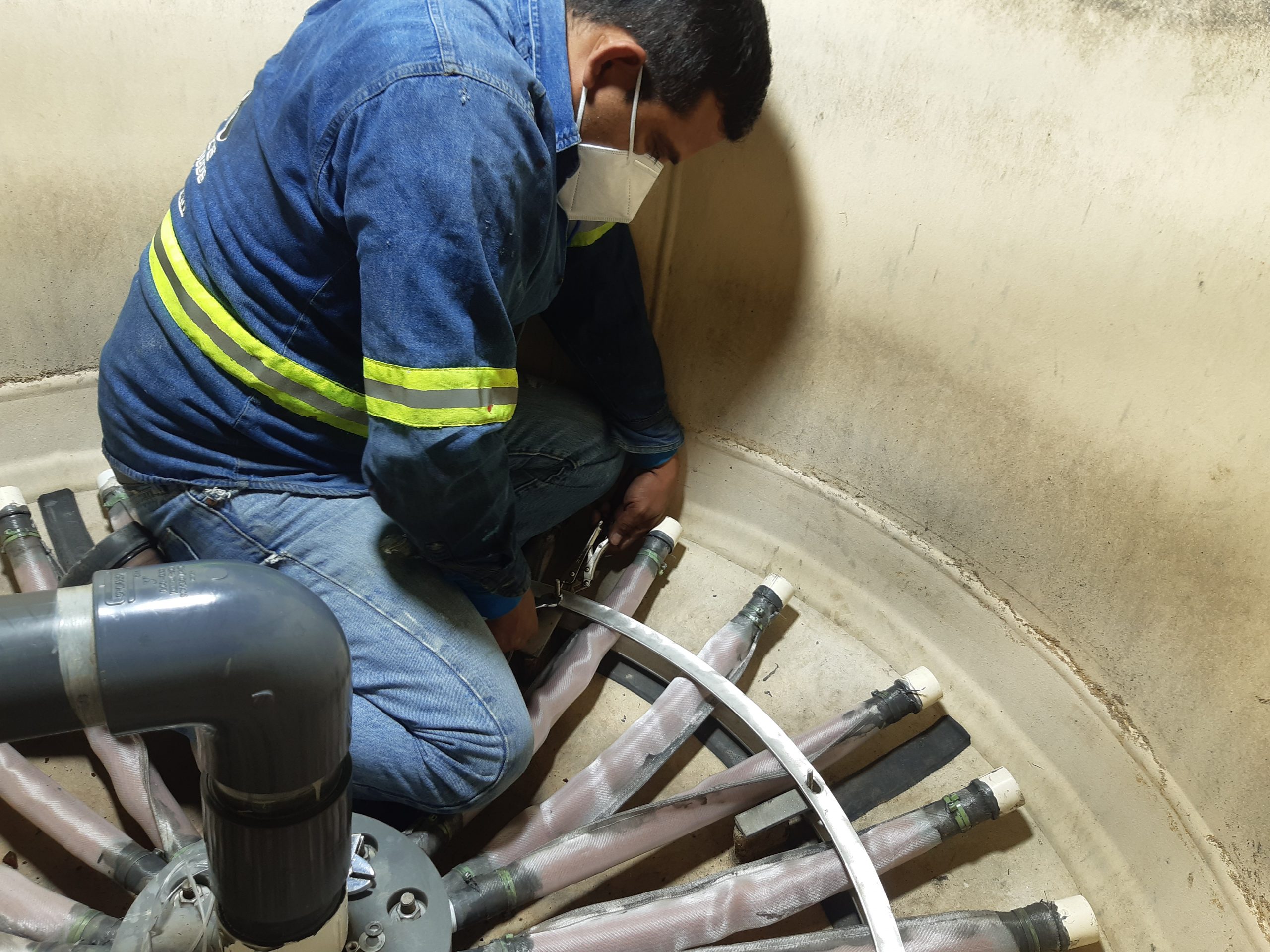 Rearmado, llenado con resina y arranque del sistema suavizador.